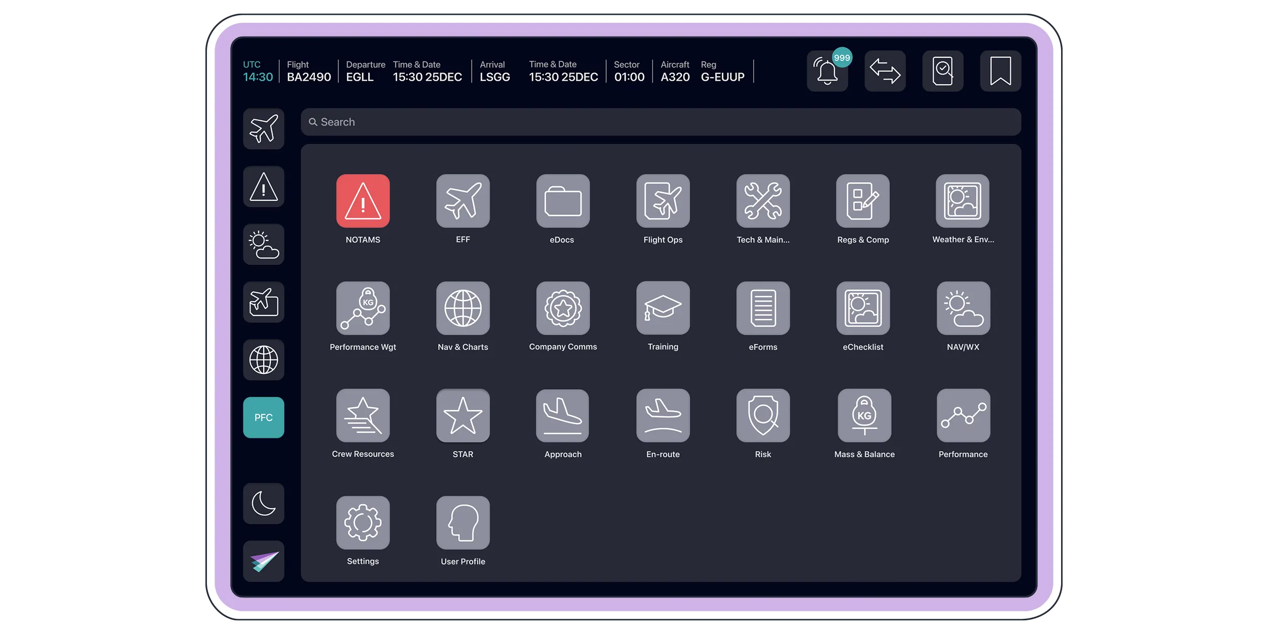 All operational documents in one secure, digital hub. E-Documentation gives flight crews instant access to manuals, policies, and operational content - structured, searchable, and always available, even offline.